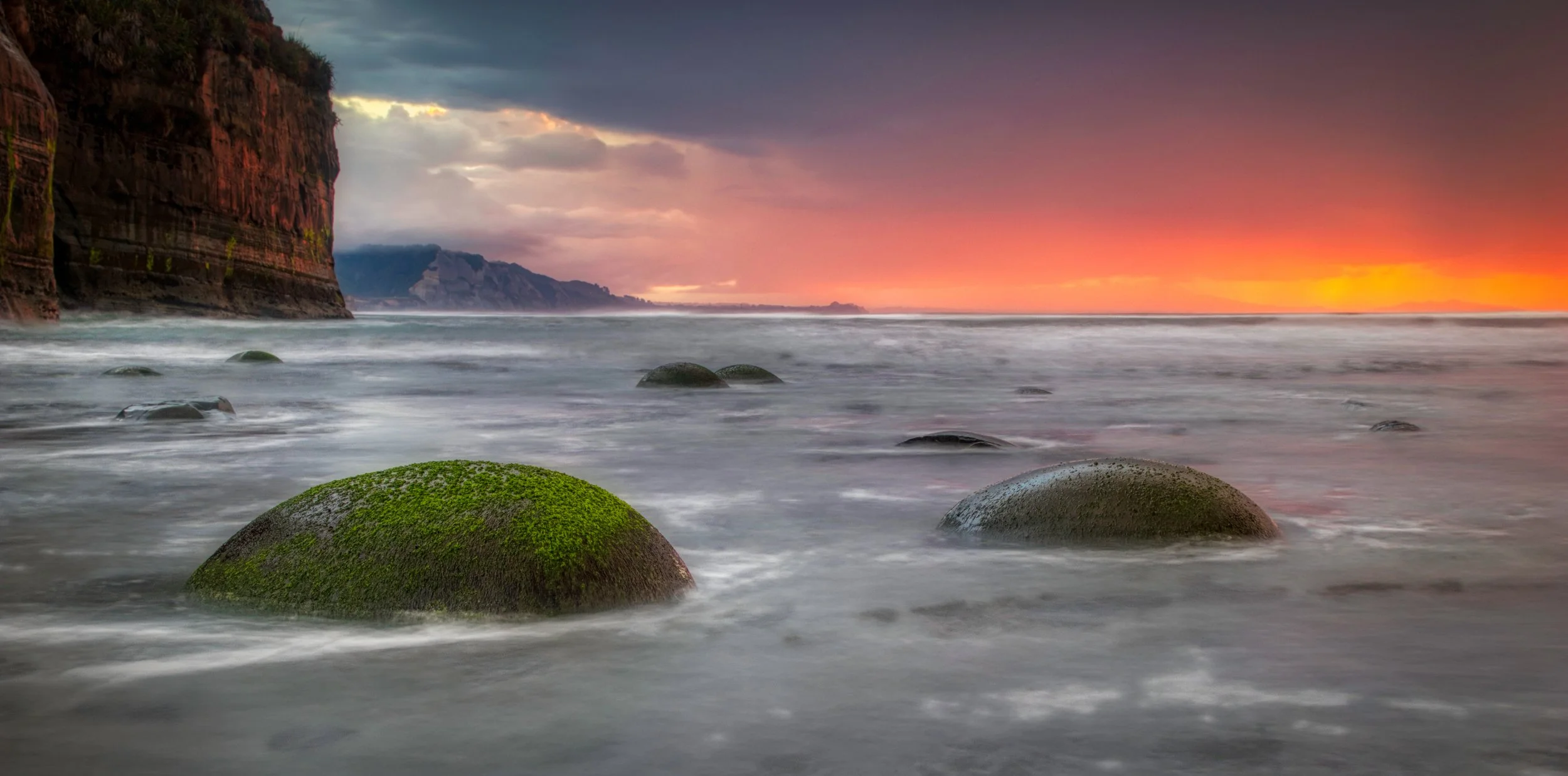 The object’s of my adventuring. The semi-submerged round boulders of Tongaporutu at sunset