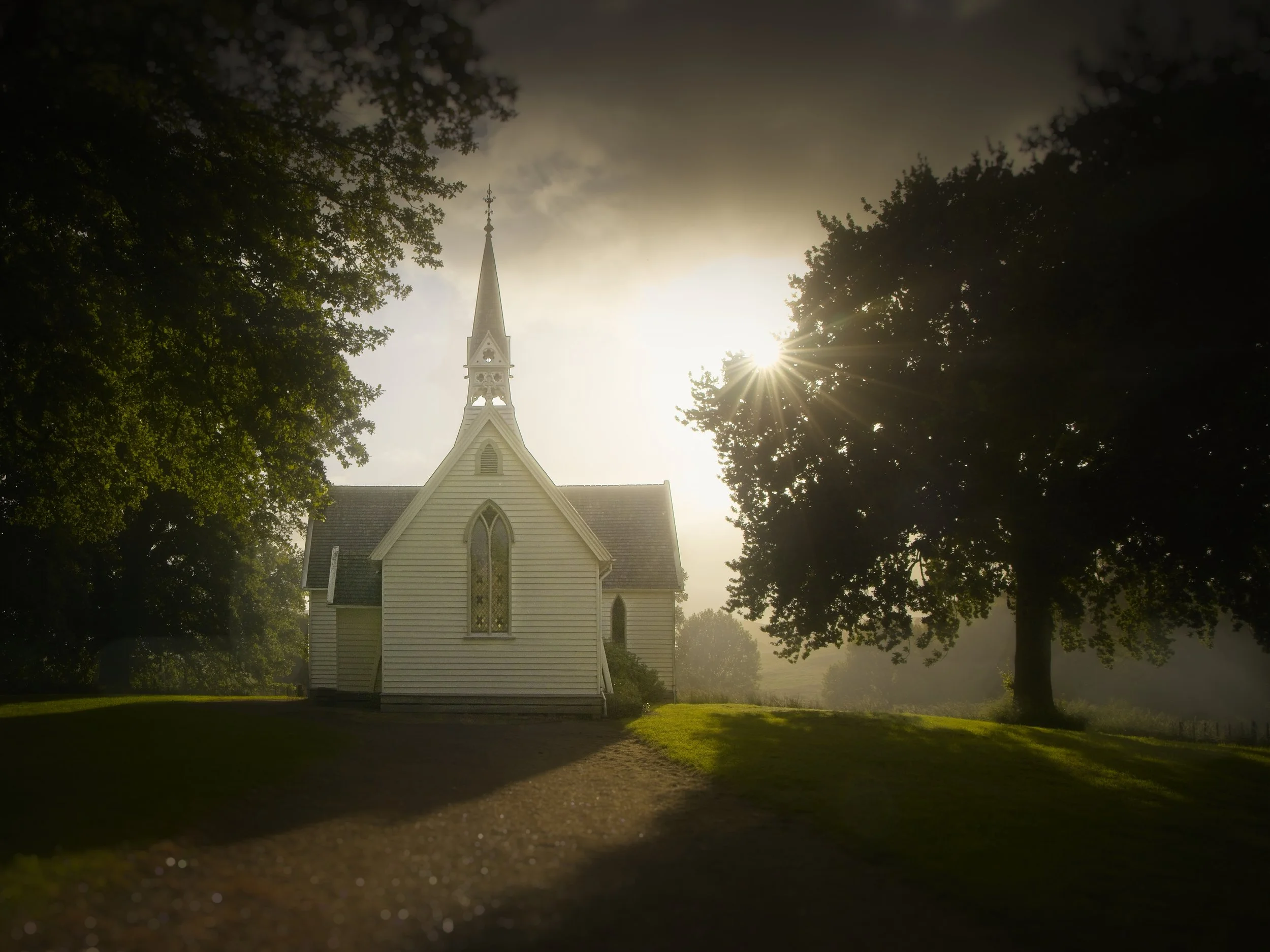 The historic church at Te Aute in the southern Hawkes Bay with morning mist surrounding with golden morning light.